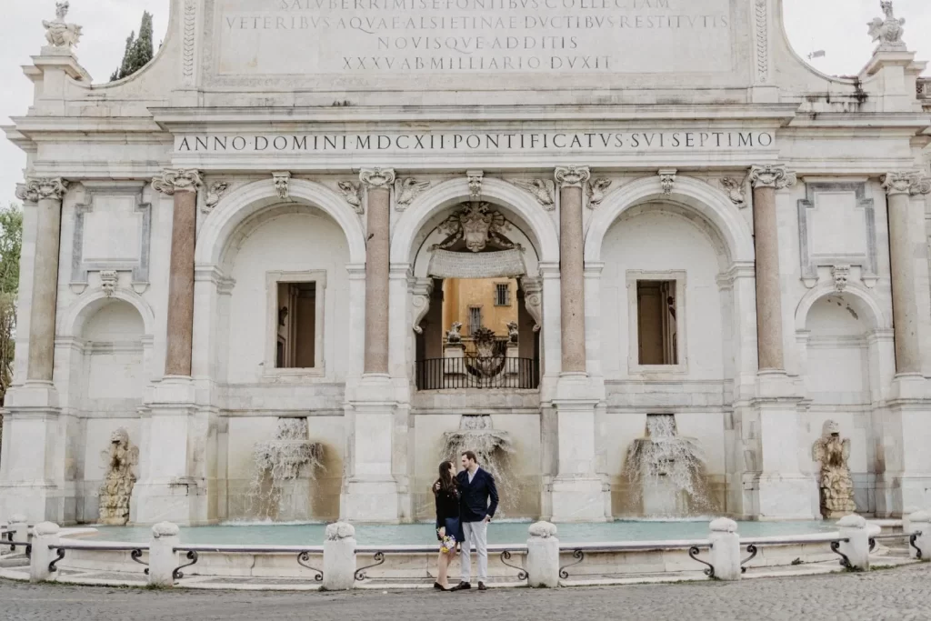 The Fontanone del Gianicolo, or the Janiculum Hill Fountain, is a beautiful and romantic location in Rome that is perfect for shooting couples. Located on the top of the Janiculum Hill, the Fontanone offers stunning views of the city and a serene atmosphere that is perfect for romantic photography.