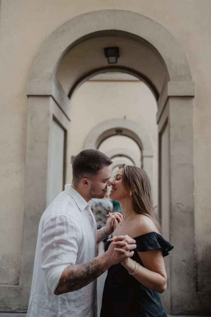 The corridor’s historic significance and architectural beauty make it a compelling choice for couples who appreciate Florence’s rich history. The nearby Arno River and surrounding streets add to the charm of this location, making it a versatile spot for your photoshoot.