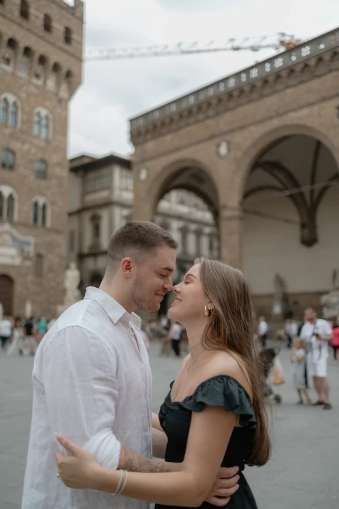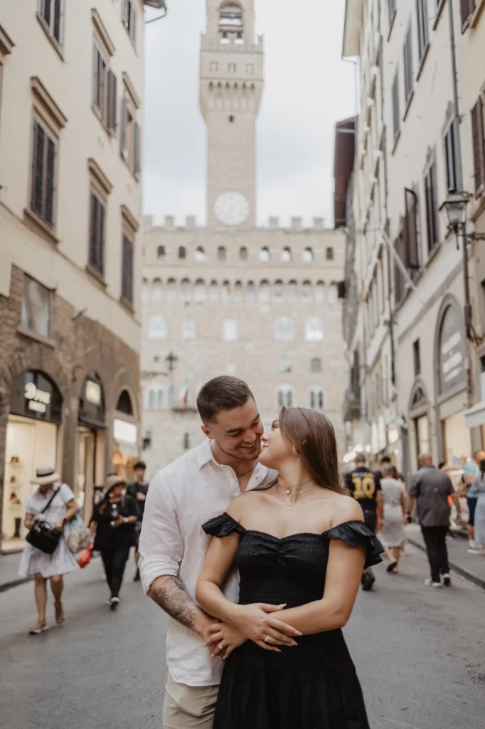 The Loggia dei Lanzi, with its collection of statues, adds an artistic flair to your photos, while the imposing Palazzo Vecchio provides a sense of grandeur and history. This location is ideal for couples who want to incorporate Florence’s artistic and cultural heritage into their photos.